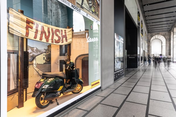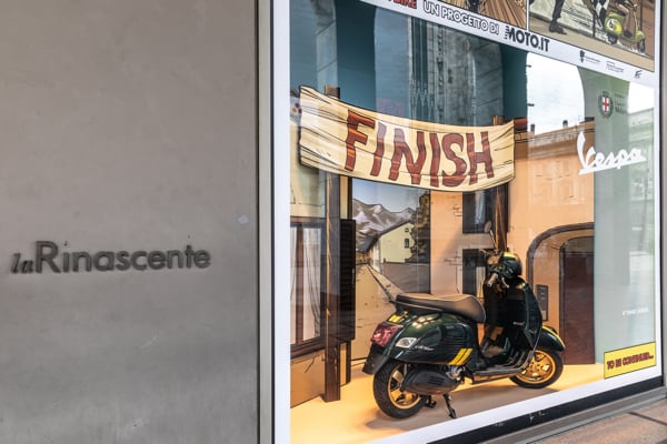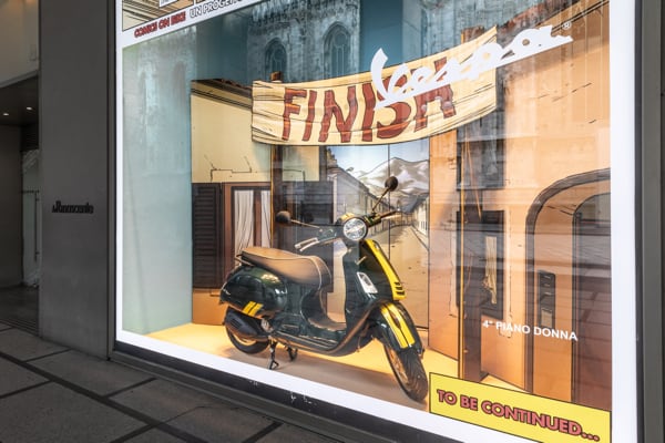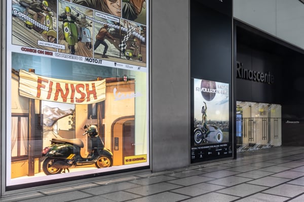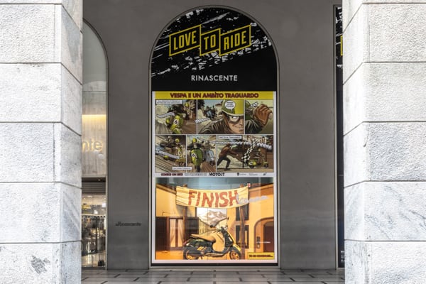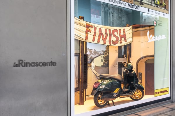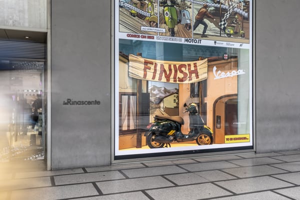 FUORI SALONE: LA NUOVA VESPA RACING SIXTIES IN… VETRINA, A LA RINASCENTE DI MILANO. Durante i giorni del salone Eicma, la nuova Vespa serie speciale Racing Sixties è stata esposta in vetrina a La Rinascente di Milano, abbinata ad una strip di Comics on bike, un progetto di moto.it con protagoniste grintose Vespe in gara… in formato “fumetto”.