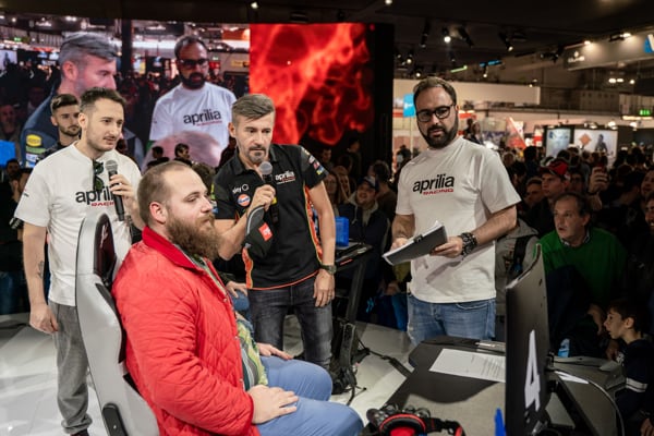 Acclamatissimo, il pluri-campione del mondo Max Biaggi, ha vissuto una intensa giornata a Eicma: ospite d’onore al torneo eSport motoGP 2019, un videogioco che simula quasi perfettamente le emozioni della pista, che si è giocato a colpi di joystick sul palco del Gruppo Piaggio, con i piloti “virtuali” sostenuti dal gamer Luca Denaro (alias ‘il vostro caro Dexter’). Palco dove poi Max ha parlato di moto e di corse, della passione per le due ruote che porta sui circuiti di tutto il mondo, non senza posare con la nuovissima Aprilia RS 660. Emozioni racing.