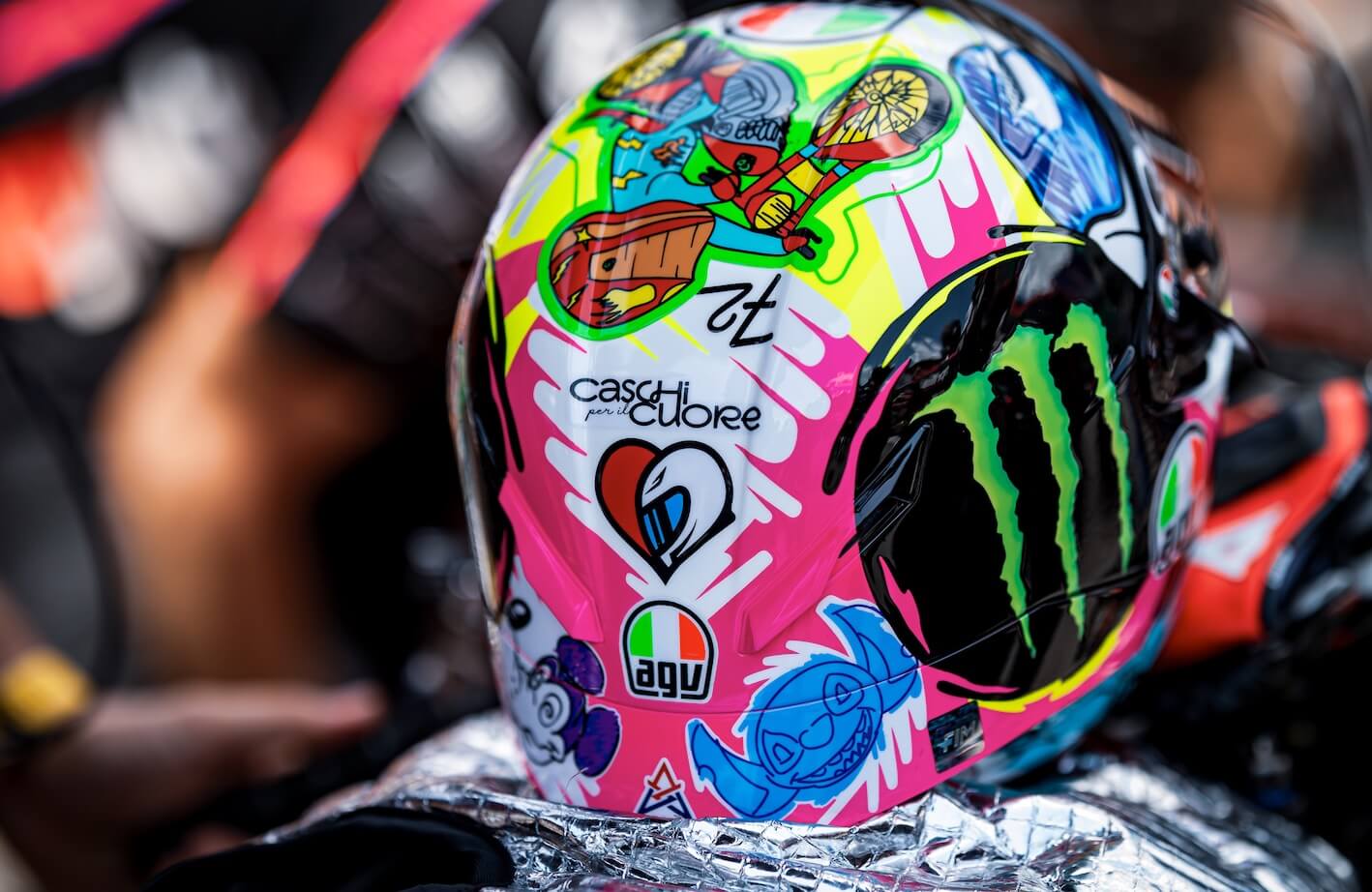 Il pilota della MotoGP Marco Bezzecchi, portavoce di "Caschi per il Cuore", al GP d’Italia al Mugello (giugno 2025) ha corso indossando un casco speciale destinato a sostenere il progetto di solidarietà, realizzato con i disegni dei piccoli pazienti esposti nel suo box del team Aprilia Racing. Il racconto del pilota sul suo blog: