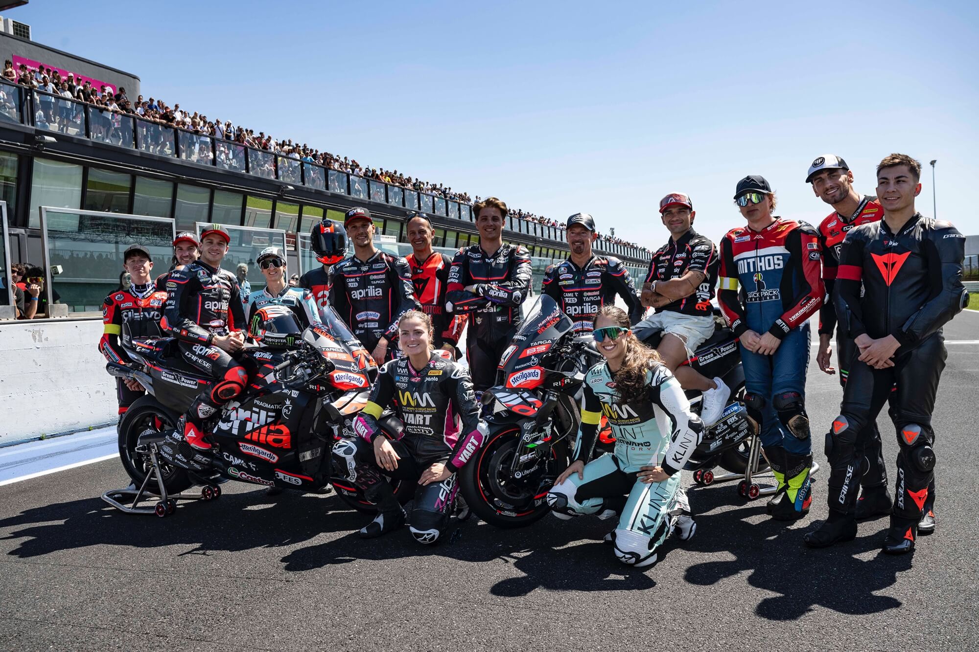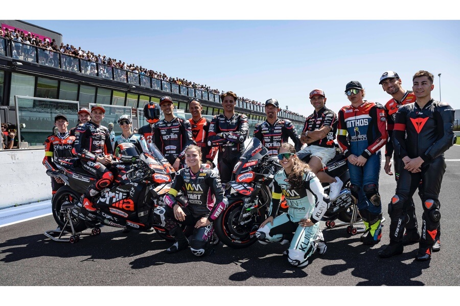 Marco è stato festeggiato proprio nella sua Romagna e altrettanti applausi hanno ricevuto le star MotoGP di Aprilia, Lorenzo Savadori e Raul Fernandez e, primo tra tutti, il campione del mondo Jorge Martin. Lo spagnolo, in recupero dopo l’incidente nel GP del Qatar, non si è risparmiato, incontrando tifosi e appassionati e sorprendendo tutti al sabato, quando, del tutto inaspettatamente, ha percorso i suoi primi giri di pista dopo l’incidente, prima con una Aprilia RS 660 Factory e poi in sella alla regina Aprilia RSV4.