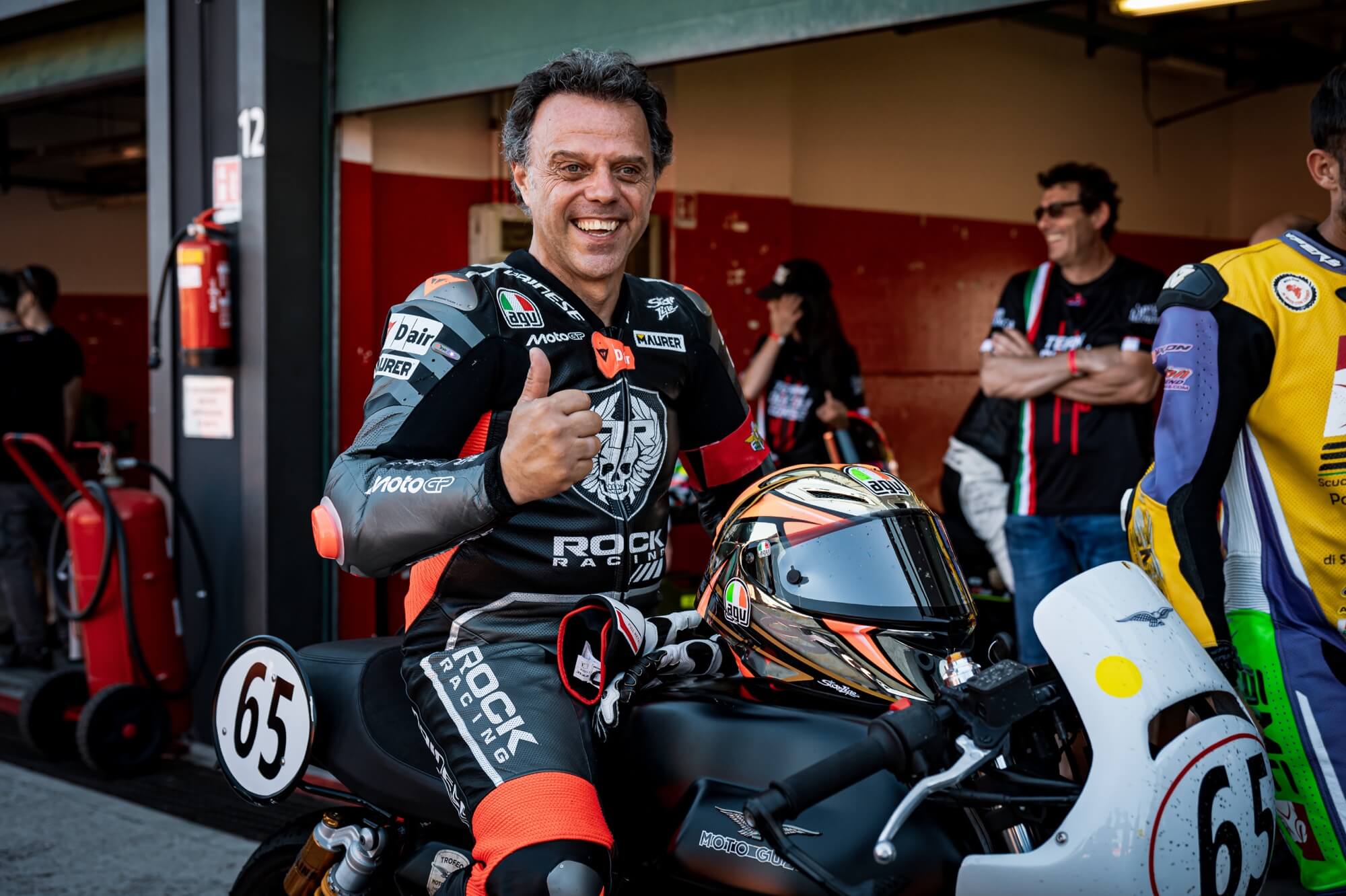 La novità dell’Aprilia All Stars 2025 è stata la gara del Trofeo Moto Guzzi fast Endurance, inserita nel programma ufficiale. Ospite speciale è stato Loris Capirossi che, senza aver mai provato la moto, la Moto Guzzi V7 in versione Trofeo, ha corso da protagonista, siglando il giro veloce.