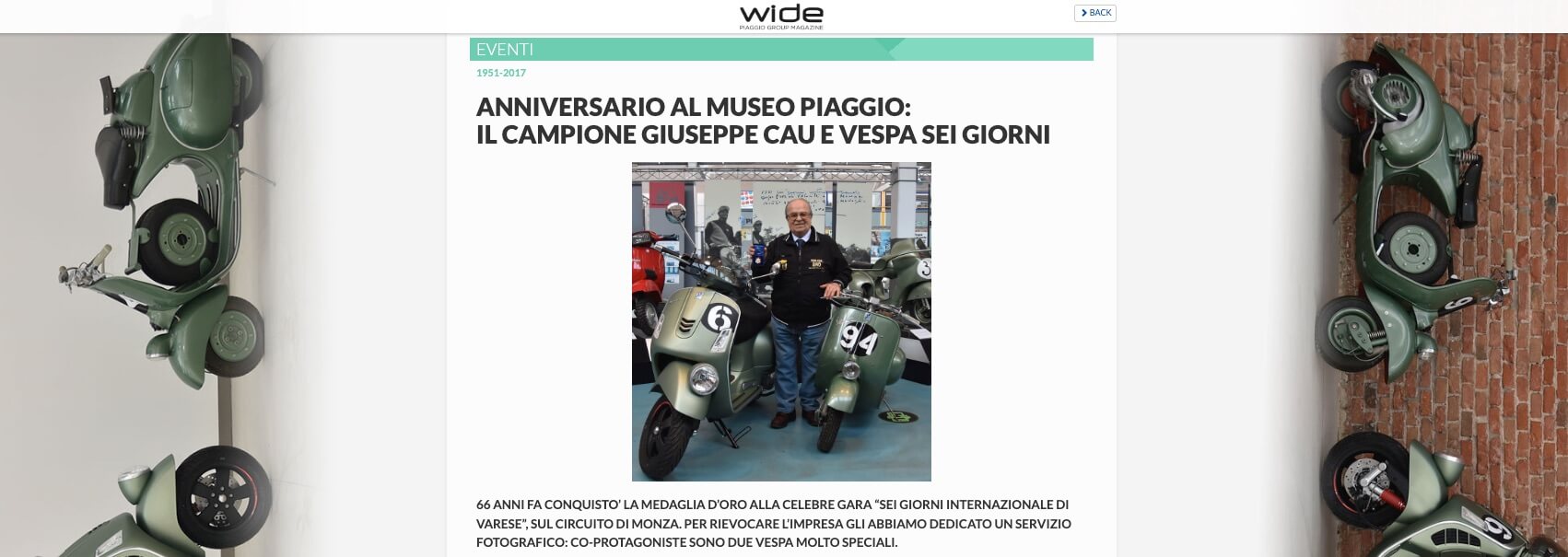 Senza dimenticare la brillante e premiata carriera sportiva di Vespa culminata, oltre che con il record già citato, con le vittorie alla Sei Giorni di Varese nel 1951, conquistando ben nove medaglie d’oro nella giornata conclusiva all’autodromo di Monza.