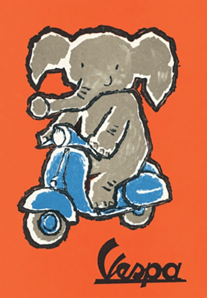 Francia, Bernard Villemot. Titolo: Ne courrez plus… roulez Vespa (Non correre più…vai in Vespa). Anno: 1954.