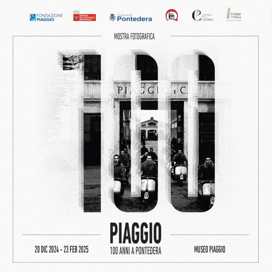 Gennaio 2025 - In occasione del centenario dell’arrivo della Piaggio a Pontedera (Pisa), la mostra “PIAGGIO – 100 ANNI A PONTEDERA” – allestita al Museo Piaggio e visitabile fino al 23 febbraio 2025 – racconta per immagini e documenti la storia del rapporto tra Piaggio e la città di Pontedera: dall’acquisto dell’officina delle Costruzioni Meccaniche Nazionali (proprio negli stessi spazi oggi occupati dal Museo Piaggio) per la produzione di motori aeronautici su licenza, fino al successo del secondo dopoguerra, grazie alla potente ripartenza permessa, negli anni della Ricostruzione (e oltre) dal progetto e dalla produzione di Vespa.