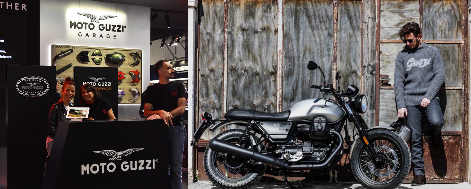COMMUNITY THE CLAN. I fans della community potranno ritirare gli esclusivi gadget dell’Aquila presso il desk The Clan (fino ad esaurimento disponibilità). E tutti i possessori di Moto Guzzi che presenteranno la tessera The Clan presso lo shop all’interno dello stand: vantaggio del 20% sul lifestyle e merchandising ufficiale. The Clan Winter Pack: Dry Bag, Maglione Storico e Guanti in pelle Moto Guzzi ad un prezzo speciale (fino ad esaurimento disponibilità).