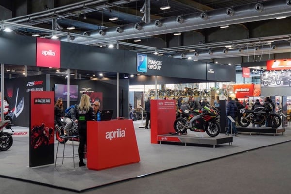 Nello spazio espositivo di Aprilia domina la sportività: quella senza compromessi di RSV4 1100 Factory, evoluzione più recente della superbike vincitrice di 7 titoli mondiali, spinta dal mitico V4 da 217 cavalli, a cui si affianca la hypernaked Tuono V4 1100 Factory.