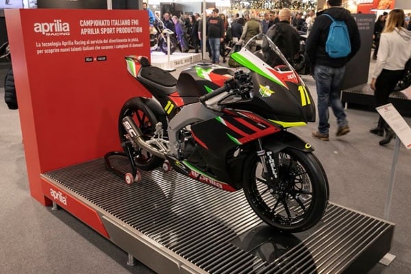 APRILIA. Anche il programma di eventi di Aprilia per l’anno in corso è davvero ricco. L’appuntamento per il pubblico di MBE è alle 12.30 del 18 gennaio quando verrà presentato il nuovo Campionato Italiano FMI Aprilia Sport Production, ideato dal costruttore veneto in collaborazione con FMI per scoprire e allevare i campioni del futuro, coerentemente alla figura di talent scout che Aprilia ha sempre avuto, avendo lanciato al successo campioni come Max Biaggi, Valentino Rossi e Loris Capirossi.
