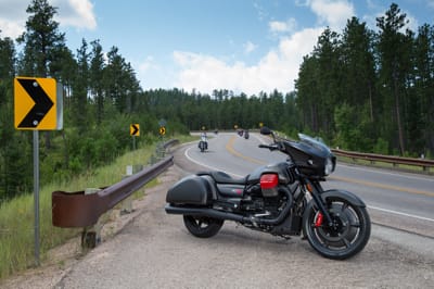 Il lancio dedicato alla stampa americana si è svolto lungo un magnifico percorso immerso nella natura di circa 300 km, ricco di differenti situazioni di guida, messo a punto per permettere un test approfondito delle capacità di MGX-21 che ne facesse emergerne le qualità ciclistiche e motoristiche. Dopo averla quindi guidata molto e bene i giornalisti americani hanno incoronato MGX-21 quale “fastest bagger ever”, rimanendo stupiti principalmente dalle performance, di solito sconosciute al mondo delle bagger, che questa Moto Guzzi offre. I motociclisti americani, per lo meno quelli presenti a Sturgis, sono molto diversi dagli europei. Nessuno porta il casco (in South Dakota non è obbligatorio) e al suo posto c’è la classica bandana legata dietro la nuca, che ben si accoppia al gilet di pelle, ai jeans e agli stivali a punta. Vanno tutti pianissimo. Amano godersi la motocicletta al minimo dei giri, inclinandola pochissimo in curva anche in quei percorsi così tortuosi che invoglierebbero a cercare qualche emozione in più. Ed è proprio qui che MGX-21 ha fatto la differenza.