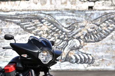 LANCIO STAMPA EUROPEO IN VALTELLINA. Le capacità dinamiche che la nuova MG vanta in curva hanno stupito non solo i giornalisti d’Oltre Oceano, ma anche quelli che hanno partecipato al lancio europeo, che si è svolto ad inizio settembre con test drive lungo le belle strade della Valtellina, a ridosso di Mandello del Lario (patria di Moto Guzzi e scenario dell’Open House 2016, che ha festeggiato i 95 anni del marchio; vedere articolo successivo in questa rubrica Event, ndr). La cultura delle moto custom in Europa non è così diffusa come in America. Le moto protagoniste del nostro mercato sono molto più leggere, potenti e dinamiche.