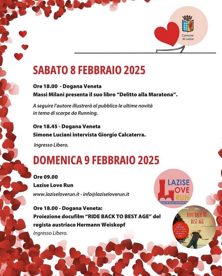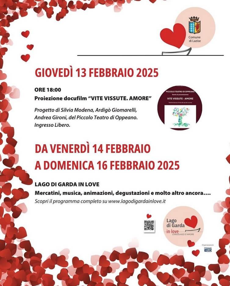 La proiezione, con la presenza del regista, nonché protagonista del docufilm (insieme con la sua Vespa GTV), si svolge nell’ambito del cartellone di eventi “Lazise. Una settimana d’amore”, dall’8 al 16 febbraio 2025, compreso “Lago di Garda in love” sul Lungolago (https://www.lagodigardainlove.it/).