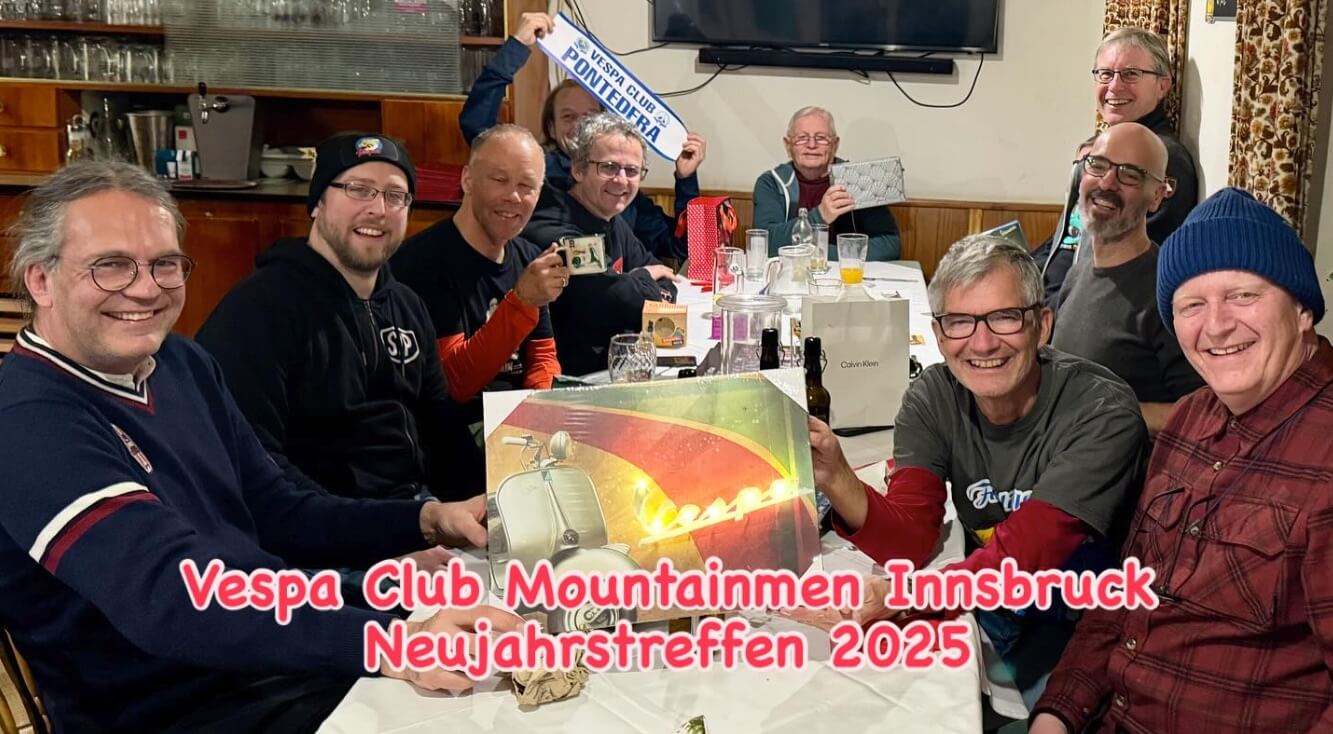 Il regista Hermann con gli amici Vespisti del Vespa Club Mountainmen Innsbruck.