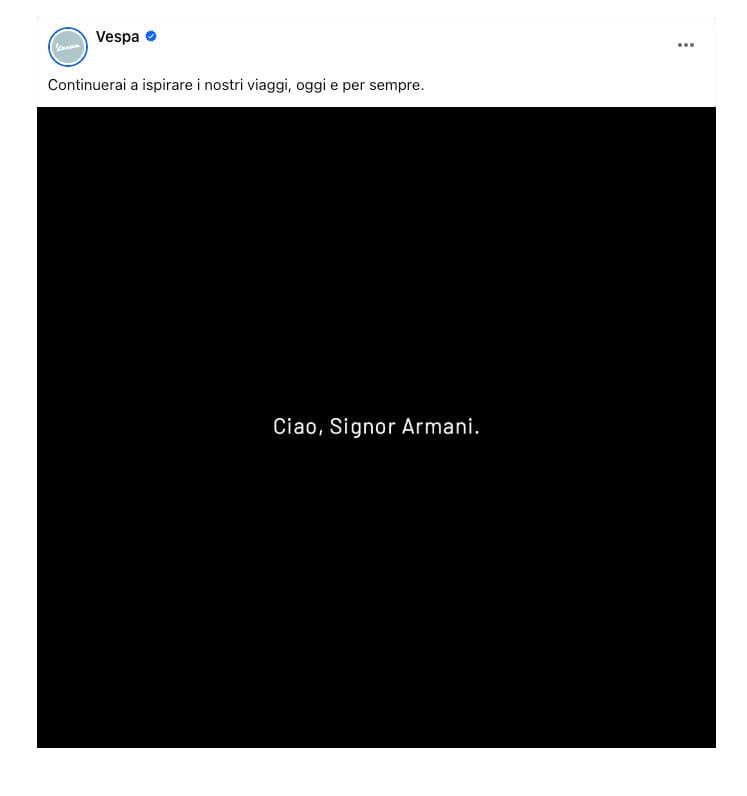 E questa sarà la prima MFW senza il “re” della moda Giorgio Armani (Piacenza, 11 luglio 2025-Milano, 4 settembre 2025). Per ricordare il “Sig. Armani” e per rendergli omaggio, abbiamo scavato nei nostri archivi per riproporre ai lettori quella collaborazione di successo – Giorgio Armani e Vespa – di dieci anni fa, che diede vita alla serie speciale Vespa 946 Emporio Armani, con capsule collection dedicata.