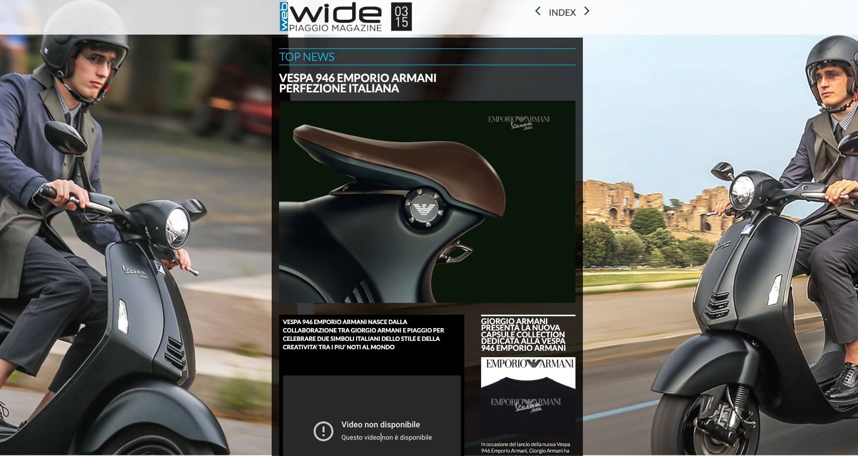 WIDE REWIND – GIUGNO 2015, LANCIO STAMPA INTERNAZIONE A ROMA DI VESPA 946 EMPORIO ARMANI. 40° ANNIVERSARIO DELLA FONDAZIONE DELLA GIORGIO ARMANI E 130° ANNO DI VITA DEL GRUPPO PIAGGIO: