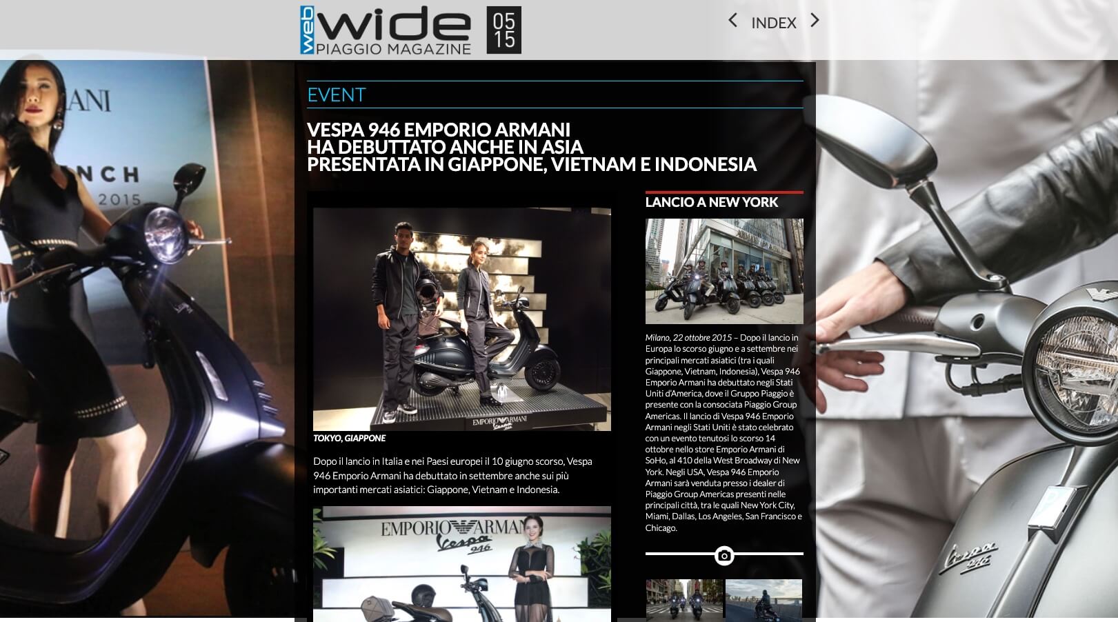 WIDE REWIND – SETTEMBRE E OTTOBRE 2015, VESPA 946 EMPORIO ARMANI HA DEBUTTATO ANCHE IN ASIA. PRESENTATA IN GIAPPONE, VIETNAM E INDONESIA. LANCIO A NEW YORK: