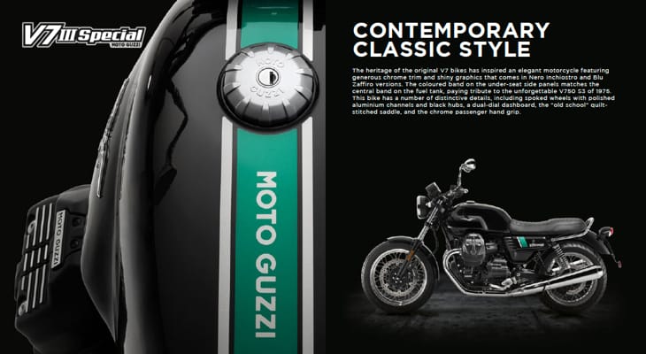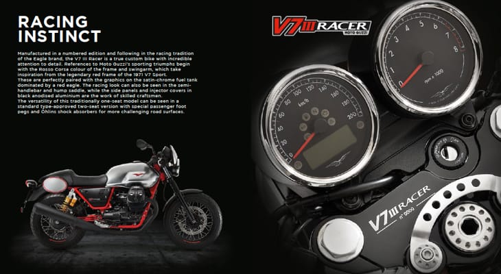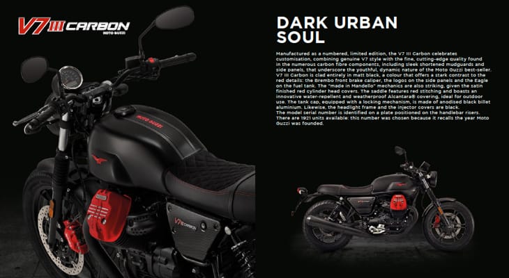 Moto Guzzi presenta al pubblico romano la più recente evoluzione della best seller V7III. Il classico senza tempo della casa dell’Aquila che, giunta alla sua terza versione, affianca ai modelli Stone, Special e Racer (tutte disponibili in prova) la nuovissima Carbon, al cui design accattivante – che mixa sportività e classicità – fa da contraltare lo stile duro ed essenziale della versione Rough in esposizione.