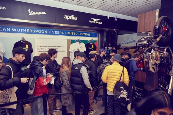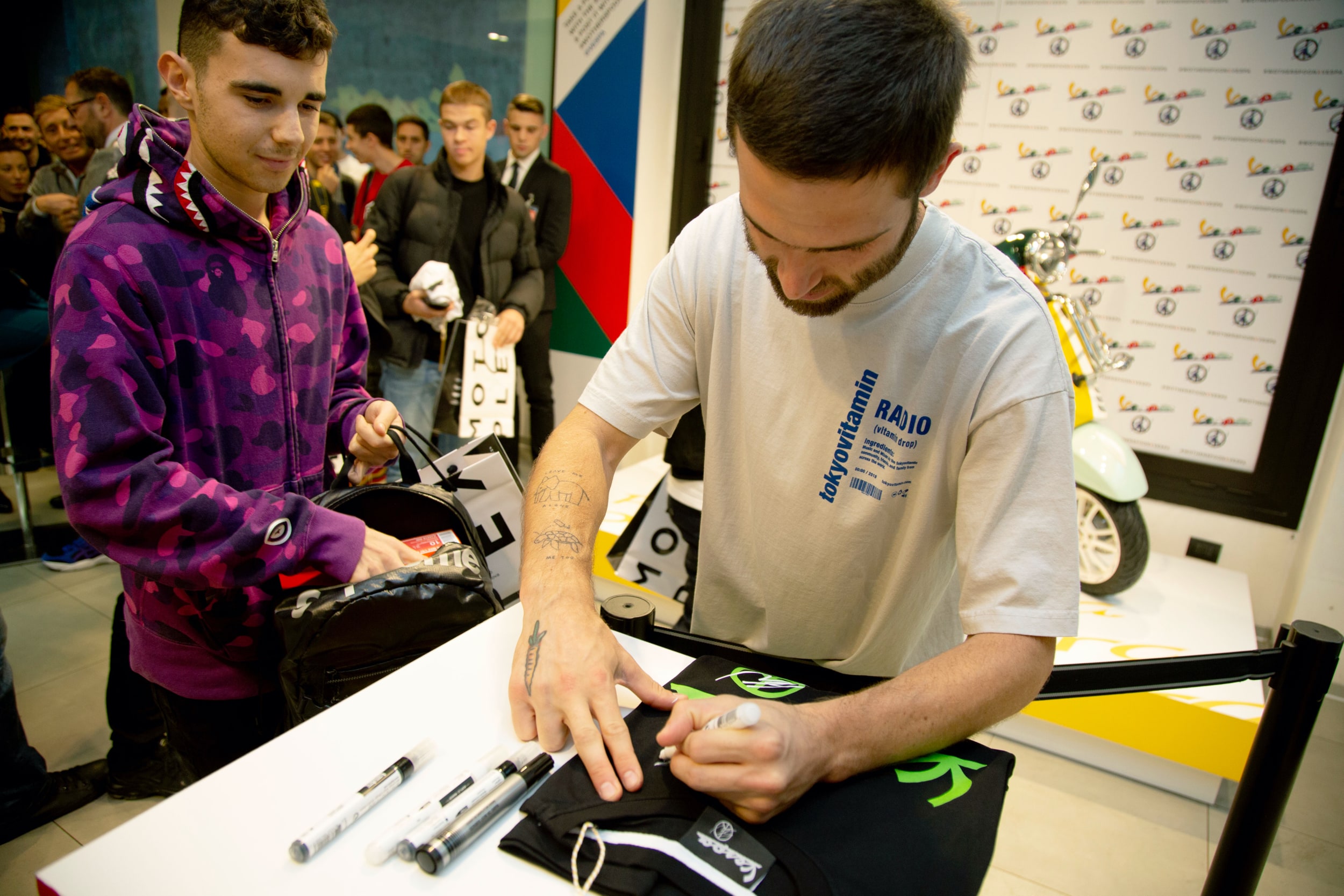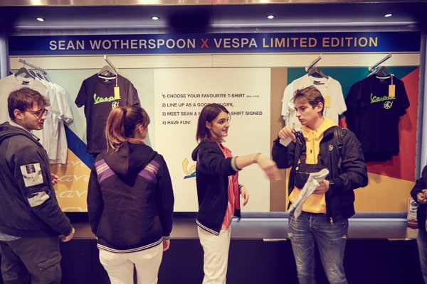 Milano, 6 novembre 2019 - L’anteprima mondiale che ha accomunato Sean Wotherspoon e Vespa è stato un successo clamoroso. Motoplex City Lounge Milano, lo showroom del Gruppo Piaggio, è stato preso d’assalto sin dal primo pomeriggio di ieri da centinaia di fans in attesa di poter incontrare Sean e acquistare - in assoluta esclusiva - i primi capi della capsule collection dedicata a Vespa disegnata dall’artista americano.