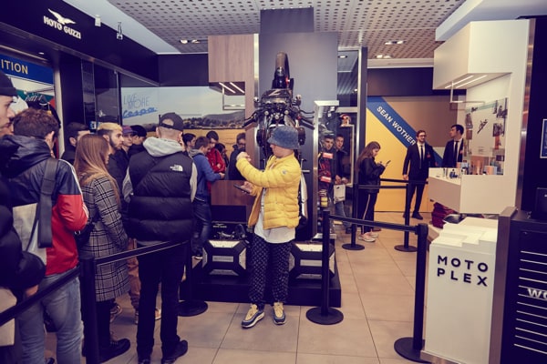 Sean è stato protagonista a Eicma dove la sua creazione è stata svelata alla stampa mondiale, prima di spostarsi in centro a Milano per incontrare centinaia di suoi fans che si erano dati appuntamento davanti alle vetrine di Motoplex Milano.