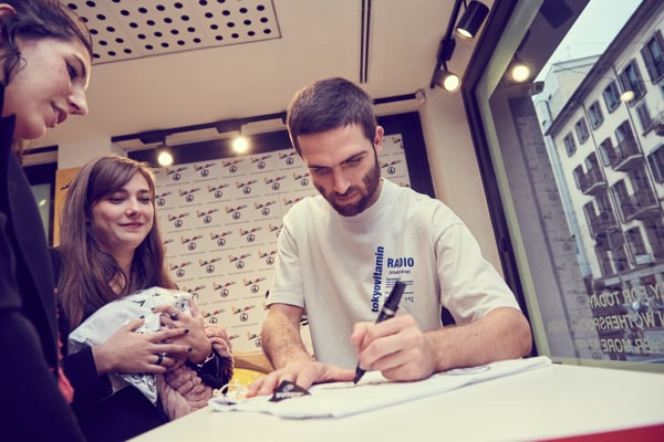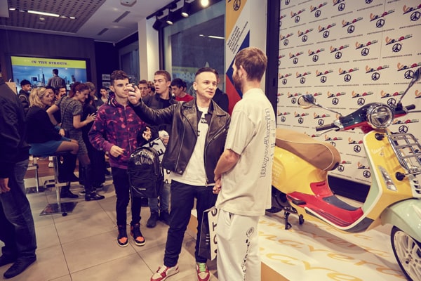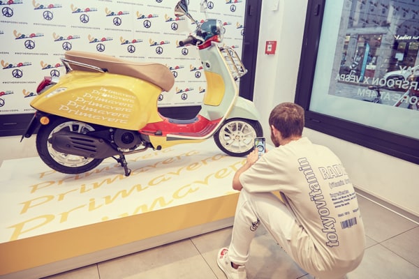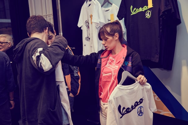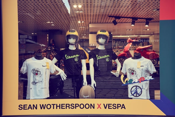 Per Vespa ha realizzato un’edizione limitata di Vespa Primavera interpretata attraverso la sua cifra stilistica e un’originale collezione, composta da casco coordinato e da quattro T-shirt, oltre ad una tracksuit, che reinterpreta in chiave contemporanea l’heritage Vespa.