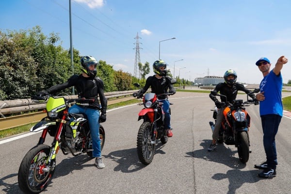 Una bella occasione per muovere i primi passi in sella, seguiti da istruttori professionisti, anche senza possedere la patente. Chi aveva già ha la patente o sapeva già guidare ha potuto provare la 125cc dei suoi sogni in circuito, sempre guidati dagli attenti istruttori. Non serviva nemmeno portare il casco o un abbigliamento specifico da moto, perché tutto l’equipaggiamento di sicurezza necessario è stato messo a disposizione dalle aziende partner. Tranquillizzati così anche i genitori; numerosi quelli che accompagnavano i figli minorenni, e alcuni hanno voluto mettersi in sella e provare in prima persona il brivido della pista.