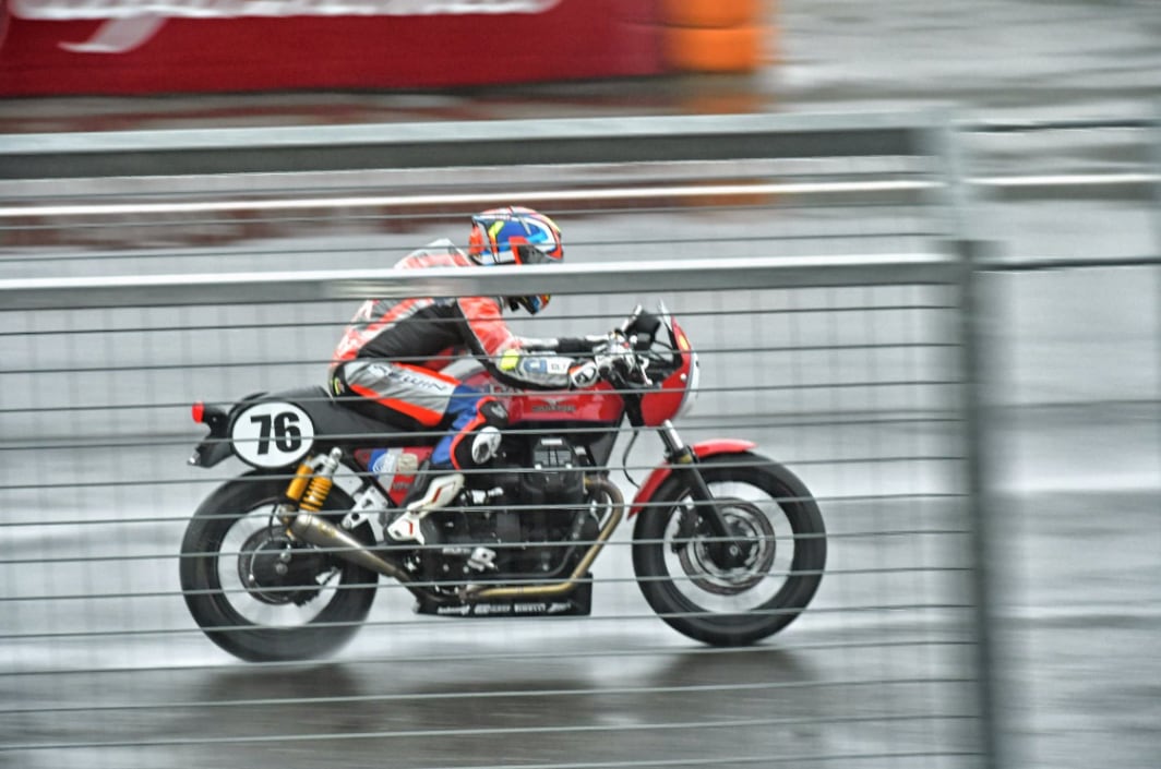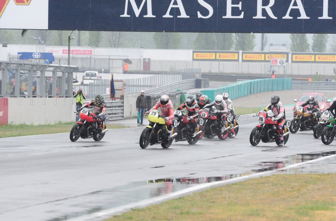 Nonostante la pista resa molto scivolosa dalla pioggia, la Moto Guzzi V7 III equipaggiata con il Kit Racing GCorse e con le gomme Pirelli Phantom Sportscomp RS si è rivelata divertente e gestibile da tutti: pochissime le scivolate, occorse nelle prime fasi della corsa ai Team ChiMoto, Aquile Millenarie, Virgin Radio e Luporacing, per questo motivo costretti al ritiro.