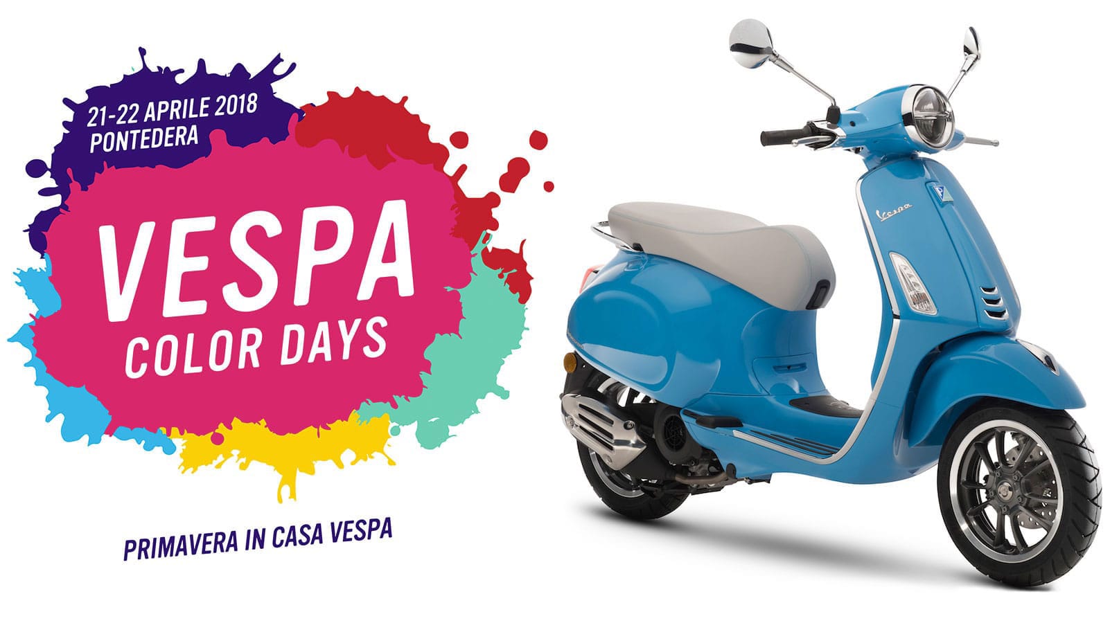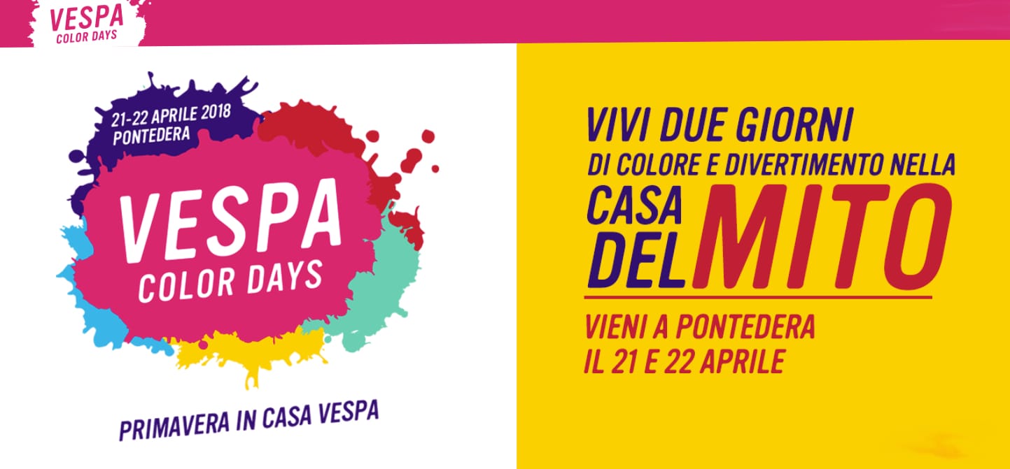 Pontedera, 12 aprile 2018 – Sabato 21 aprile e domenica 22 aprile la Primavera arriva in casa Vespa grazie ai “Vespa Color Days”, un fine-settimana di festa che trasformerà l’intera città di Pontedera in un grande villaggio Vespa, con un programma ricco di eventi legati all’amore per lo scooter più amato al mondo. Sarà un grande happening, al quale sono attesi migliaia di Vespa fans, famiglie e appassionati da tutta Italia e durante il quale tutti potranno immergersi nel colorato universo Vespa, a cinquant’anni esatti dalla nascita di un modello che sarebbe diventato un classico intramontabile, Vespa Primavera. Piccola, agile, spinta da un motore brillante, a partire dal 1968 la Primavera ha messo le ali a più generazioni diventando un modello mitico ma anche uno dei più clamorosi successi commerciali nella storia di Vespa. A 50 anni dalla “rivoluzione” targata Primavera, Vespa celebra il territorio, uno dei suoi modelli più iconici e la passione che circonda questo straordinario marchio italiano aprendo a tutti gli appassionati le porte dei luoghi dove Vespa nasce ininterrottamente dal 1946.