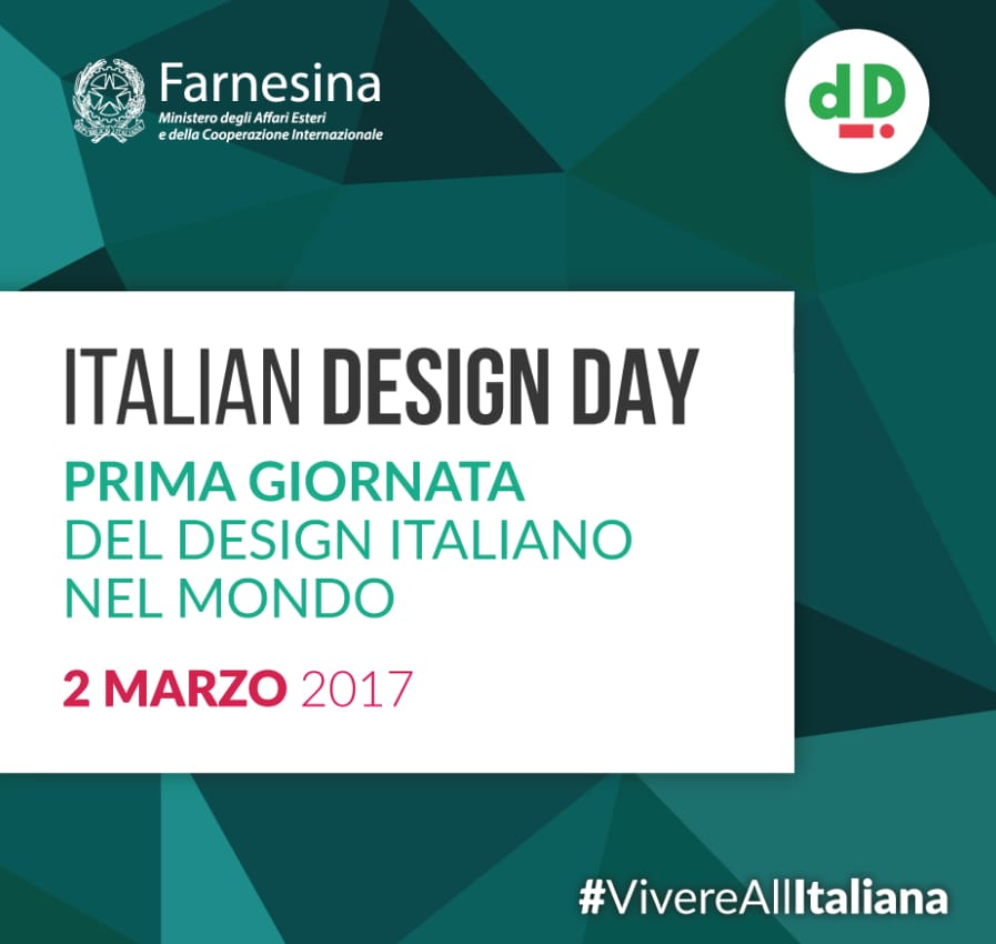 E’ stato inaugurato il 2 marzo 2017, alla Farnesina, a Roma, il primo “ITALIAN DESIGN DAY” (“Prima giornata del Design Italiano nel mondo”), organizzato dal Ministero degli Esteri e della Cooperazione Internazionale, dal Ministero dei Beni e delle Attività Culturali e del Turismo e dalla Triennale di Milano, in collaborazione con il Salone del Mobile, l'Associazione per il Disegno Industriale e l'Agenzia per la promozione all'estero e l'internazionalizzazione delle imprese italiane.