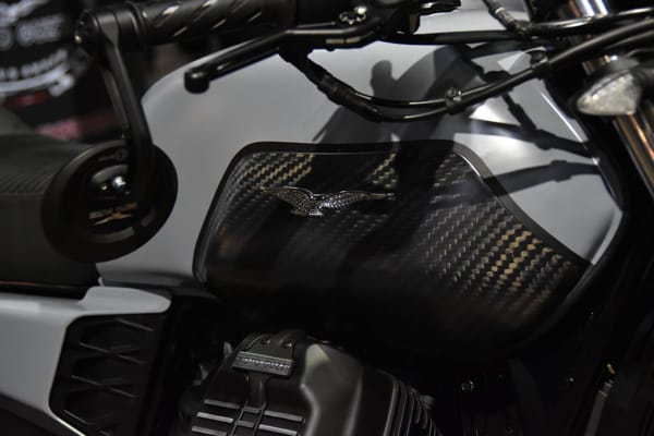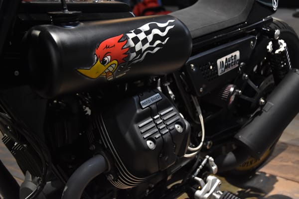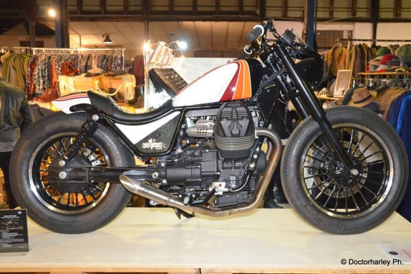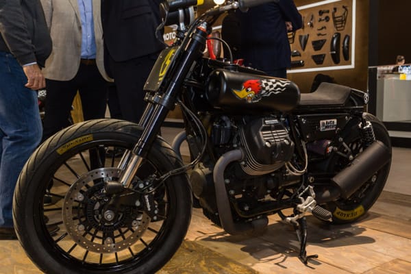 Tra le special esposte c’erano anche due superbe interpretazioni di Filippo Barbacane: una su base Moto Guzzi 850 T3 chiamata Corax; l’altra su base Moto Guzzi Bellagio, dal nome Terramoto. Porta la sua firma anche la MG Griso Anima Nera esposta nello stand del celebre customizzatore. In mostra all’East Market c’erano anche Calibro 9, su base MG V9 Roamer, tra le protagoniste di Lord of the Bikes 2017, come Charlotte (su base Griso) e Hab-Ola (su base V7 III Special).