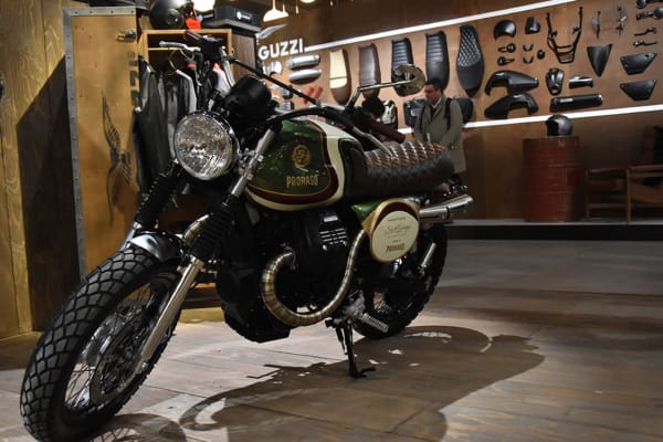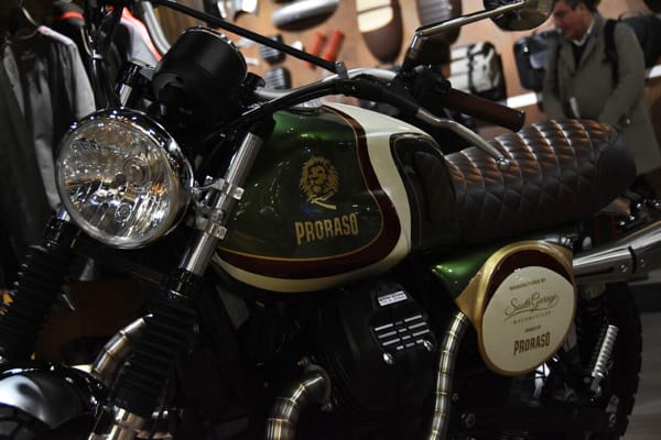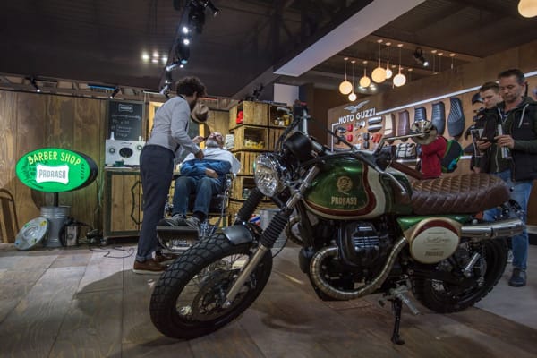 Nell’ampio stand del Gruppo Piaggio, nell’area dedicata al brand Moto Guzzi c’erano alcune “bellezze speciali” tutte da ammirare: le tre V7 III “Nomad”, “Avio” e “Sketich bike-clubber”, la Asfy su base V9 Roamer (tra le protagoniste del contest tv “Lord of the Bikes” 2017, andato in onda su Sky Uno HD), la V9 Roamer con livrea customizzata per il tour “Sali a Borgo” e la Moto Guzzi V7 III realizzata da South Garage per il brand Proraso.