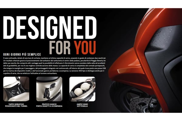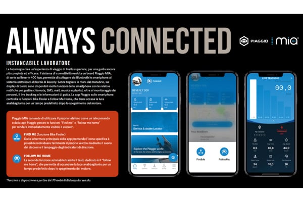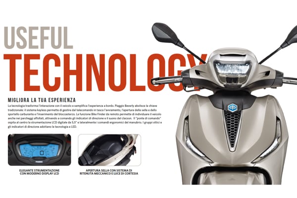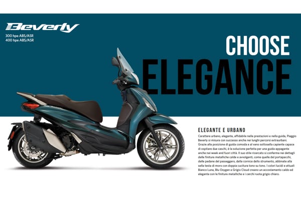 In aggiunta, è proposto un vantaggio cliente pari a 500 Euro sui modelli della gamma Piaggio Beverly e di 300 Euro sulla gamma Piaggio Medley.