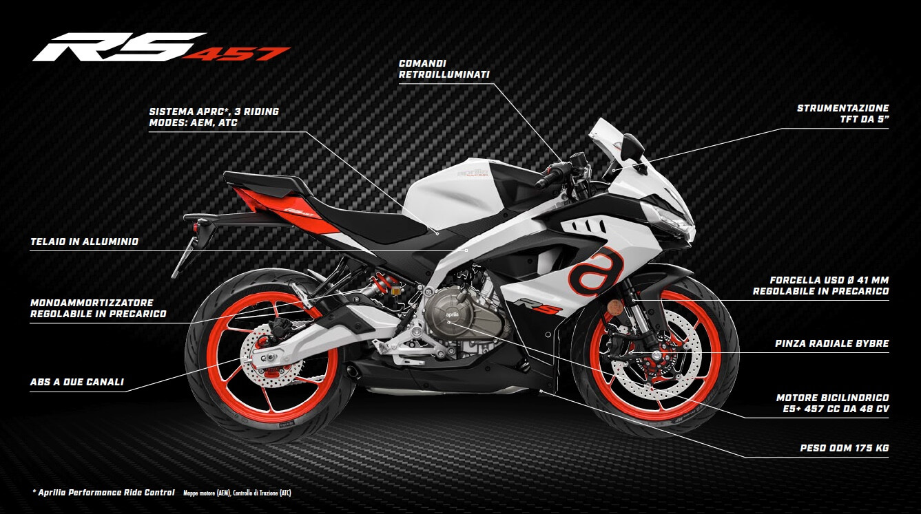 Aprilia RS 457: https://www.aprilia.com/it_IT/modelli/rs-457/rs-457-457-parallel-twin-4-stroke-2024/