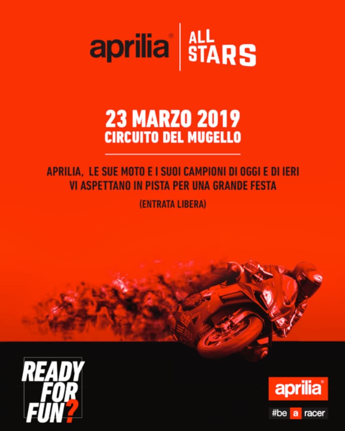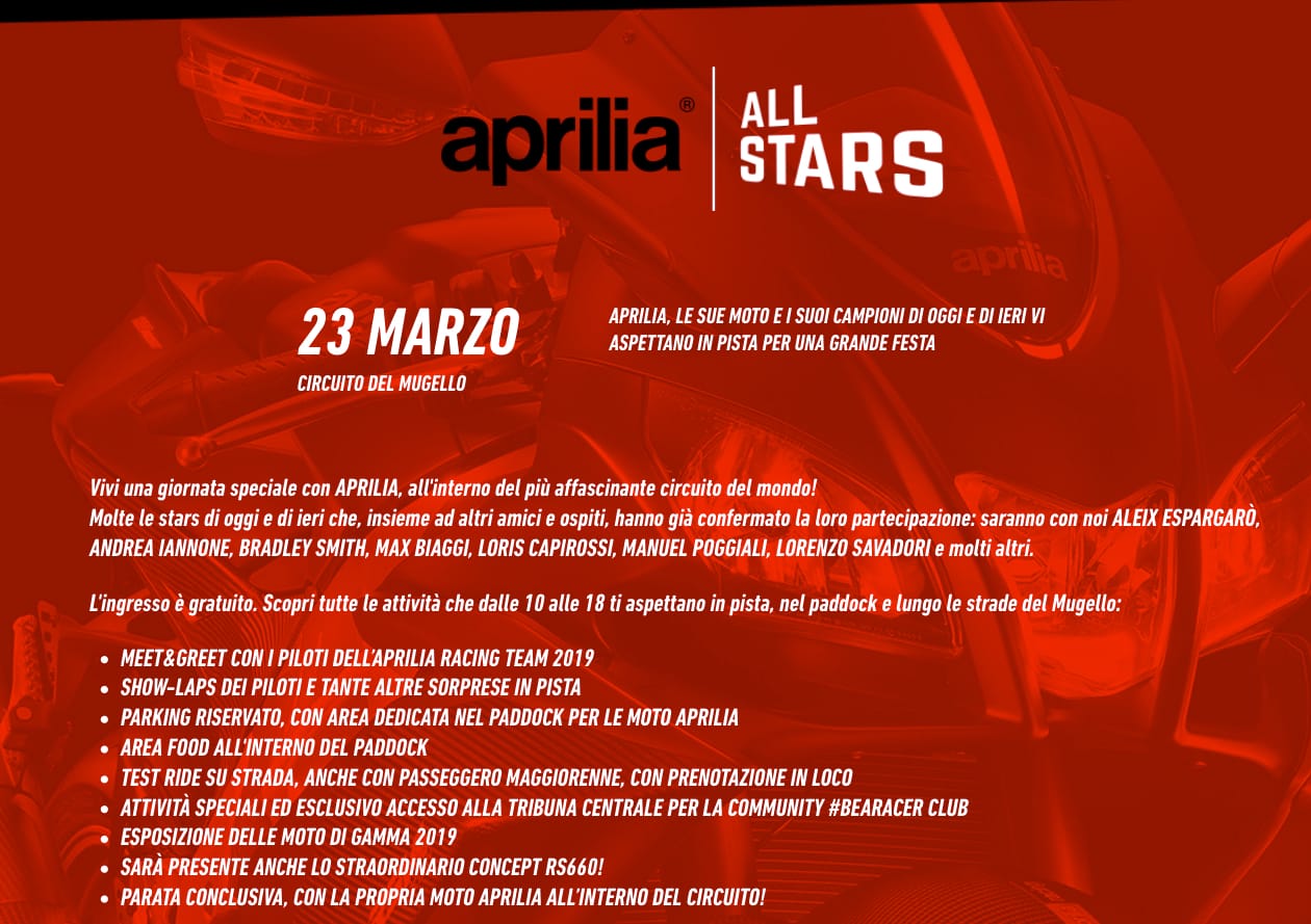 L’ingresso sarà libero a partire dalle 10 del mattino, ma è già possibile registrarsi all’evento alla seguente pagina web: allstars.aprilia.com