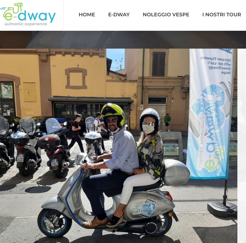 Spiega Nadia Mangiavacchi di E-DWAY srl Electric Mobility Solution: “Siamo Fiorentini e la nostra azienda è una start-up toscana 100%, che nasce a fine 2019 da un’idea: il mondo dell'elettrico che sposa i tour turistici con un'icona dello stile italiano: la Vespa! Ma, a causa della prima ondata di Covid-19 in primavera, siamo riusciti ad aprire solo il 1° agosto 2020 a Firenze”. Un “lancio” che comunque non è passato inosservato, guadagnandosi vari articoli sui giornali. Continua Nadia: “Ad oggi abbiamo 12 Vespa elettriche; un parco veicoli che stiamo valutando di ampliare entro il 2021 aprendo altre sedi in Italia”.