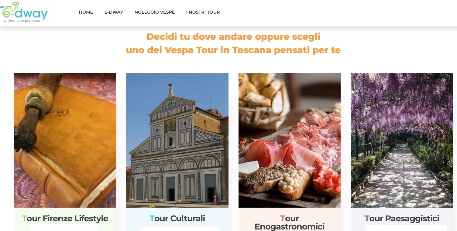 E poi ci sono i Vespa Tour in Toscana ideati da E-DWAY, per una authentic experience, in collaborazione con partner d’eccellenza.