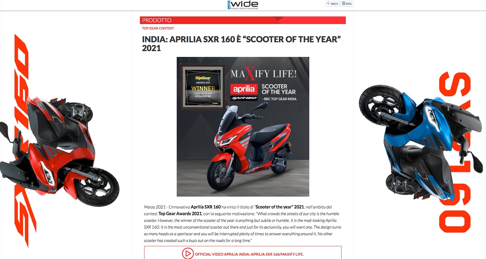 wide.piaggiogroup.com/articles/products/india-aprilia-sxr-160-scooter-of-the-year-2021