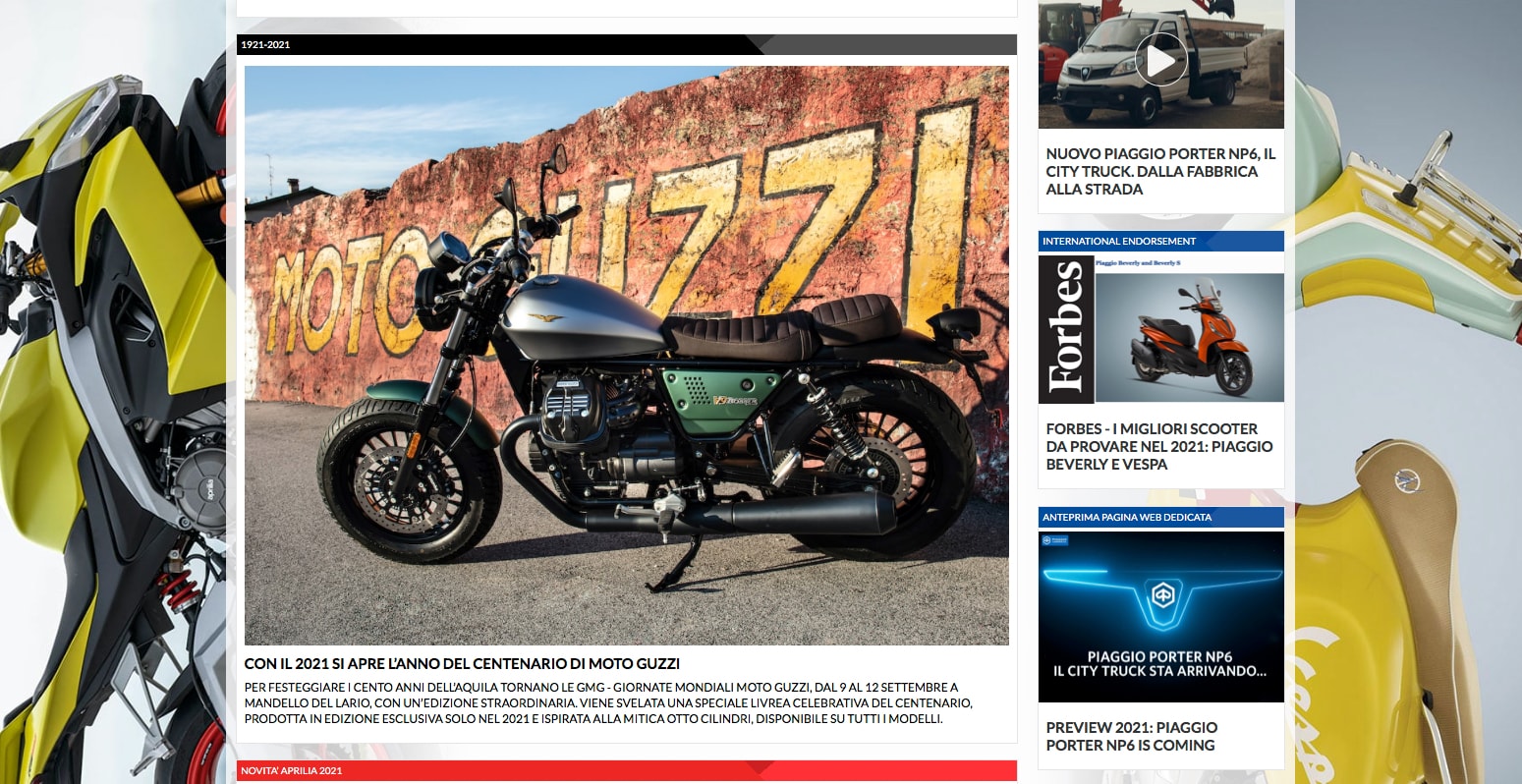 In questi giorni il Gruppo Piaggio ha iniziato i primi lanci degli 11 nuovi modelli (cinque scooter e sei moto) previsti per il 2021, tra cui le attesissime novità Moto Guzzi V7, l’Aprilia Tuono 660 e il nuovo Beverly, mentre arriverà sul mercato il prossimo giugno un nuovo scooter elettrico a marchio Piaggio.