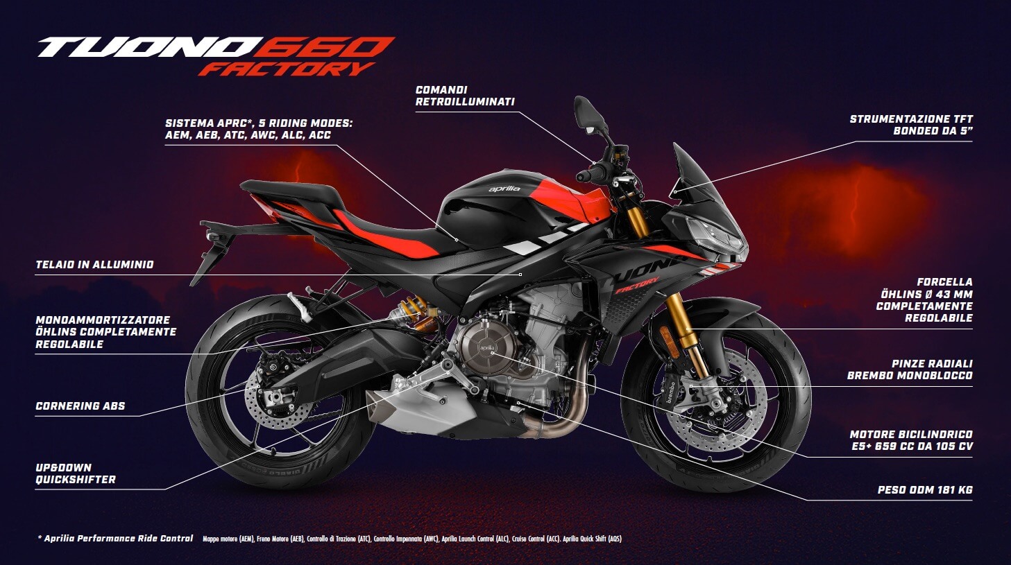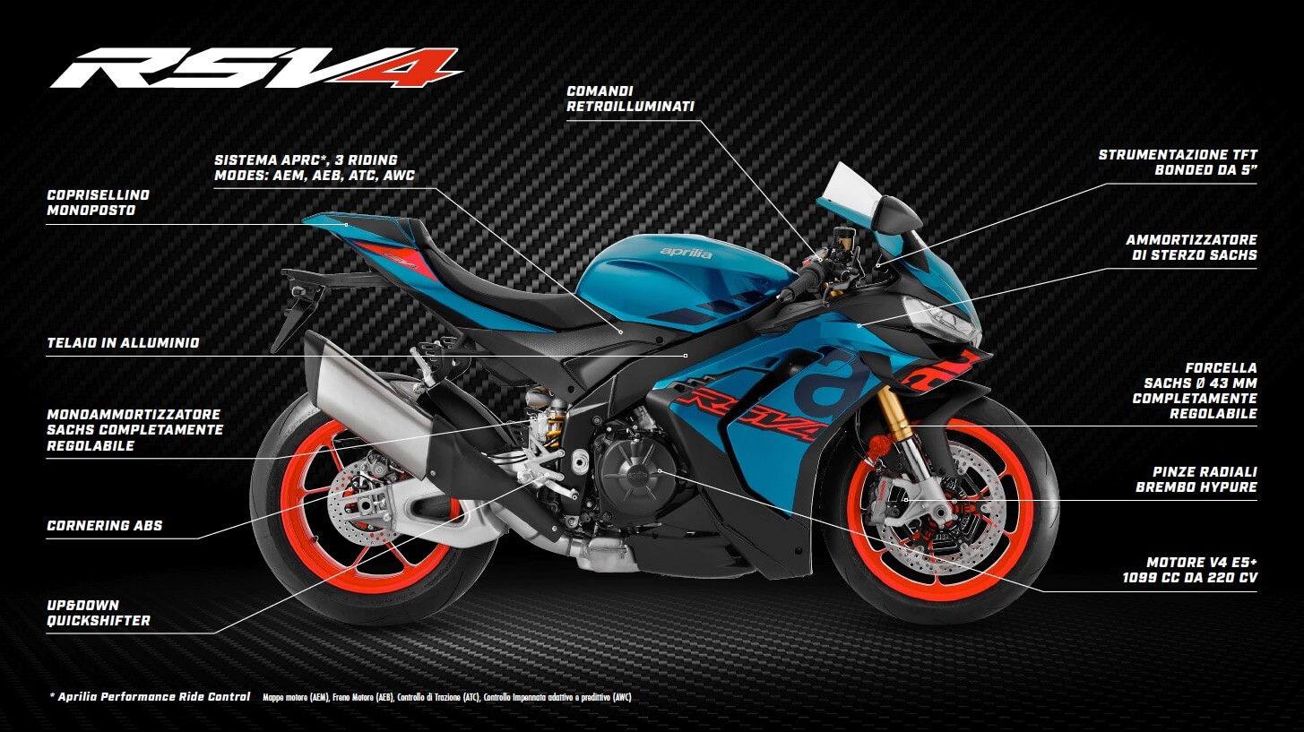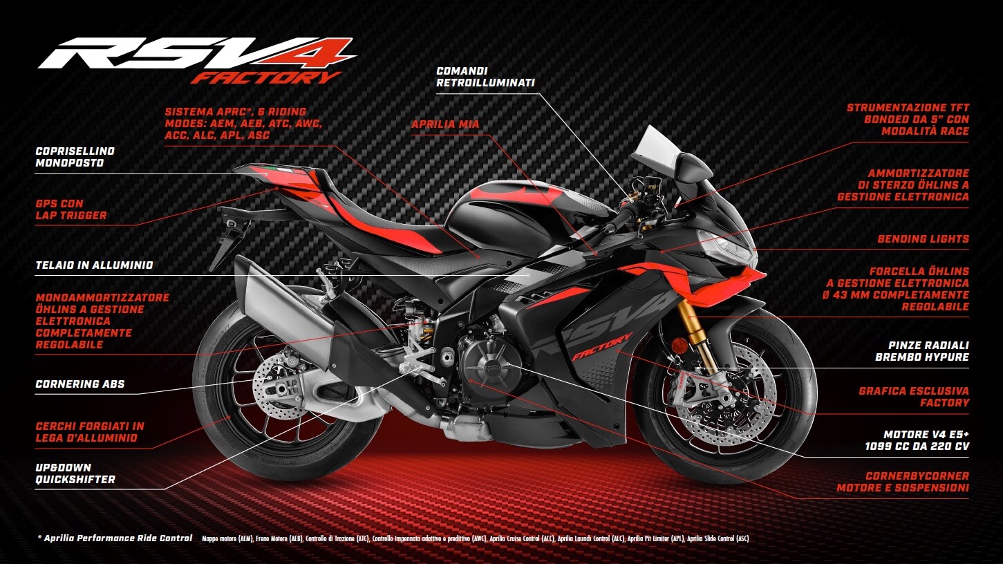 Modelli Aprilia Factory 2025: RSV4, RS 660, Tuono V4, Tuono 660.