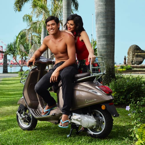 Vaea Tracqui, Presidente di “ETS TRACQUI & FILS”, importatore del Gruppo Piaggio, con sede a Papeete, Tahiti, Polinesia Francese, in occasione della “Tahiti Fashion Week” (evento dedicato alla moda e alla creatività, dove sfilano le più importanti griffes internazionali e a cui è abbinato un famoso concorso di “mannequins”), ha realizzato un servizio fotografico per una grande campagna di comunicazione dedicata a Vespa. Protagoniste sono modelle e modelli, come Heitiarii e Mehiata e il fascinoso Tehotu, ritratti con lo scooter più bello del mondo: Vespa. Nel servizio è declinata nei modelli Sprint, Primavera e GTS. Location: i luoghi più belli dell’isola, con sfondo la natura lussureggiante. Look chic d’ispirazione anni Cinquanta per le modelle, pants e infradito per il modello. Il servizio è stato realizzato da una “firma” della fotografia di moda: Teiki Devendeville.