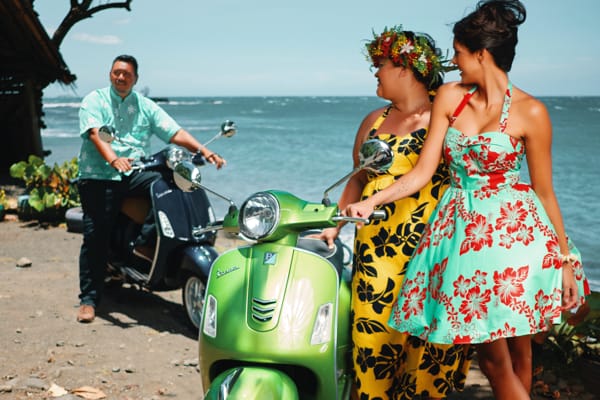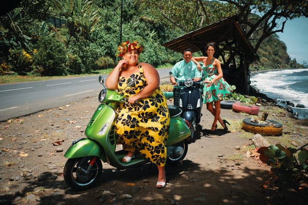 “Camelia, Tizia, Yvonnick, Mehiata (Miss Tahiti 2013), Lucie e Hinanui. Sono state scelte modelle e modelli di differenti taglie perché a Tahiti la maggioranza della popolazione è…oversize; ed io volevo che ogni polinesiana e ogni polinesiano potesse immaginarsi su una Vespa”.