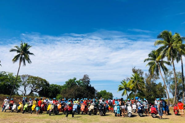 Abbiamo organizzato un grande evento celebrativo, aperto a tutti, con raduno di Vespisti, musica dal vivo, animazione, concorso con premi in palio, esposizione di veicoli vintage e attuali, artisti che hanno decorato livree di Vespa e tanto altro; si è svolto il 18 novembre al Parc Vairai; tema centrale dell’evento era proprio Vespa e la gente della Polinesia”.