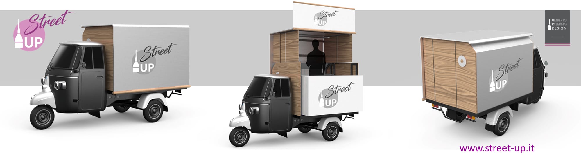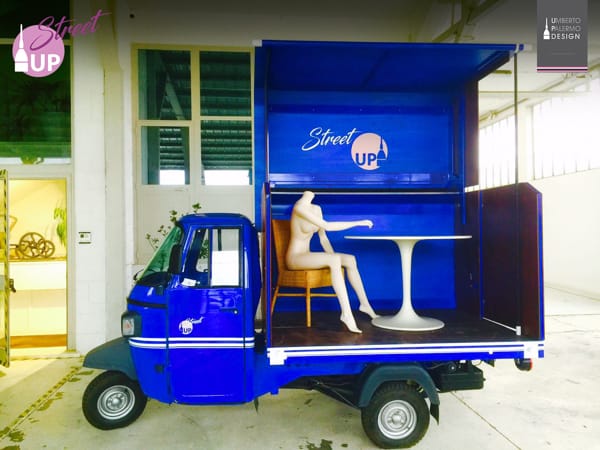 Pontedera, 4 maggio 2017 – UP Design, centro stile specializzato nel design industriale in Italia e nel mondo, ha presentato Street UP: il nuovo brand offre a imprenditori, aziende, operatori in franchising e allestitori estrema flessibilità e libertà nella realizzazione di allestimenti be-spoke su base Ape Piaggio. I primi esemplari Street UP by UP Design sono già operativi in Italia e all’estero.