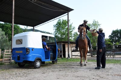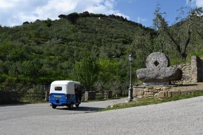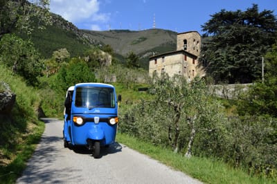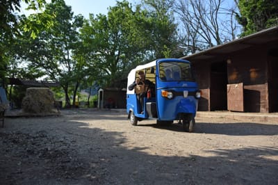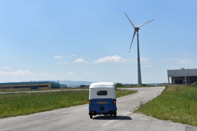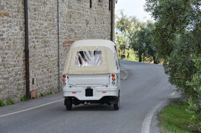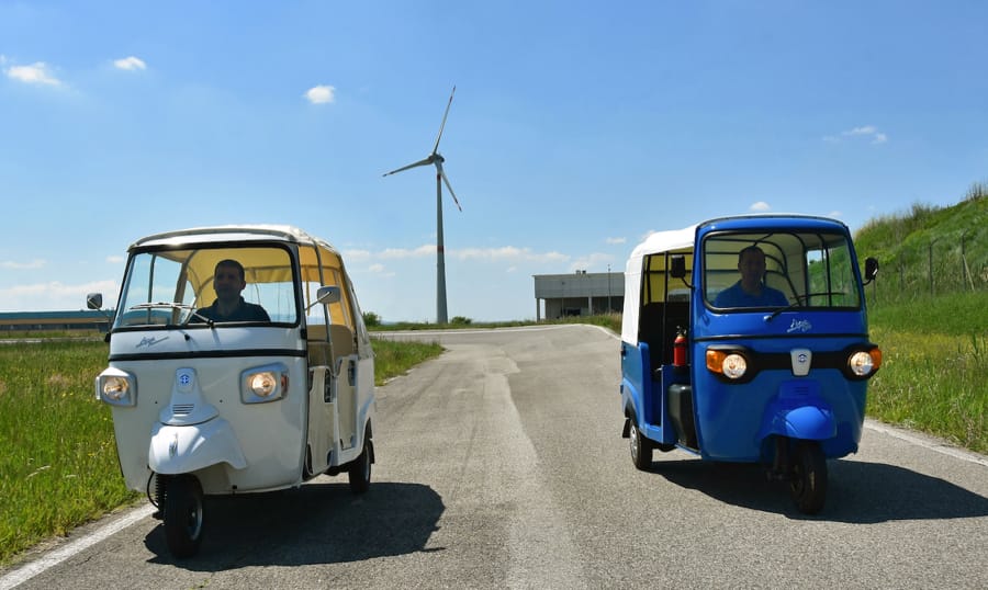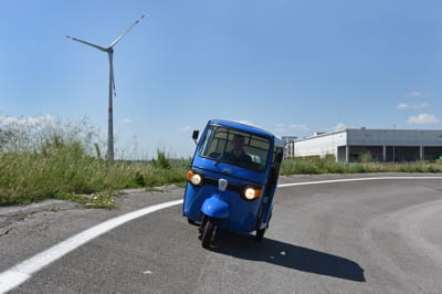 Test per Apé City e Romanza sulla pista di prova, all’interno degli stabilimenti Piaggio in Italia (a Pontedera, in Toscana).