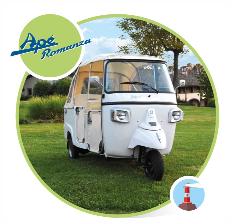 Vanta una grande e lunga tradizione anche l’Ape in versione “Calessino”, da decenni il veicolo più “chic” per il trasporto persone nei luoghi turistici e sulle isole Italiane ed europee, quale evoluzione del fortunato veicolo a tre ruote Piaggio.