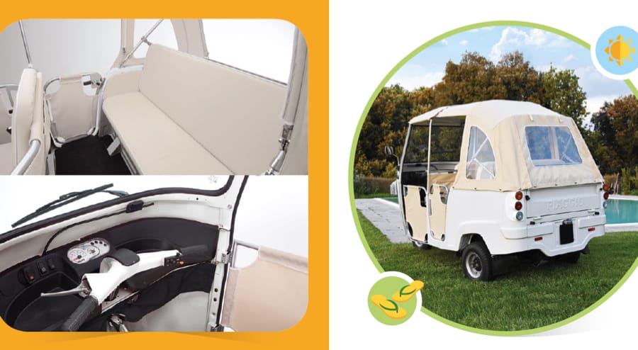 La nuova versione Apé “Romanza” decapottabile, per i mercati Africa & America Latina, è destinata in particolare a resort e hotel, ed è anche la soluzione ideale per eventi e campagne di comunicazione “on the road”.