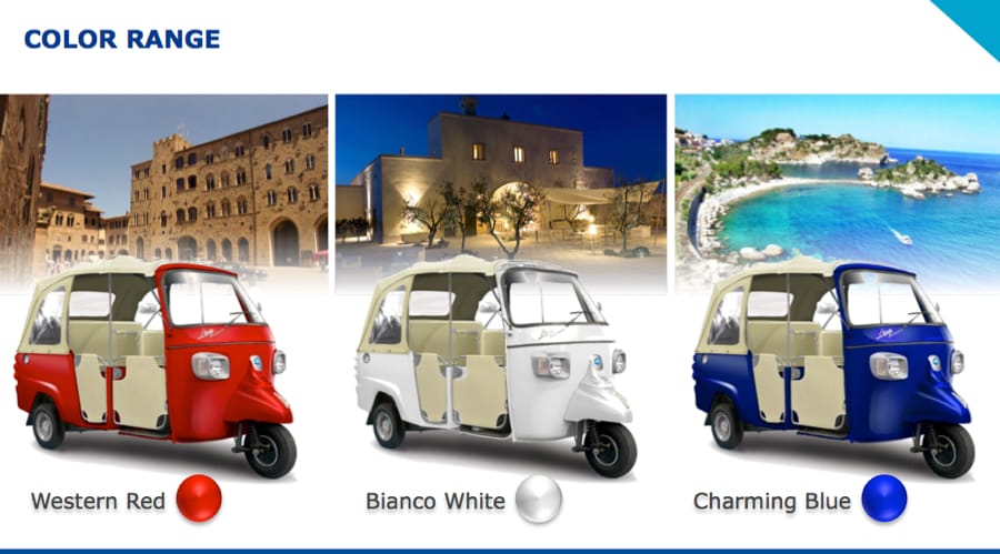 La nuova Apé City (200cc di cilindrata, disponibile in varie alimentazioni: benzina, diesel, Gpl e metano) è offerta in un’ampia gamma di colori.
