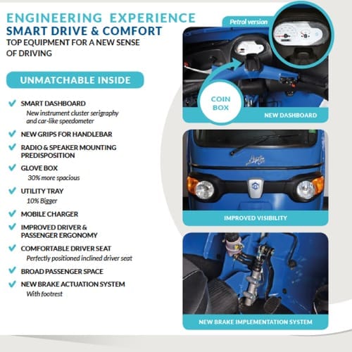 NUOVE VERSIONI DELL’EVERGREEN A TRE RUOTE, PER RISPONDERE AI BISOGNI DI MOBILITA’ DELLE PERSONE NEI PAESI EMERGENTI. AGILI E AFFIDABILI SU OGNI STRADA, OFFRONO IL MIGLIOR POSIZIONAMENTO “VALUE FOR MONEY” DELLA CATEGORIA NEI MERCATI DI RIFERIMENTO.