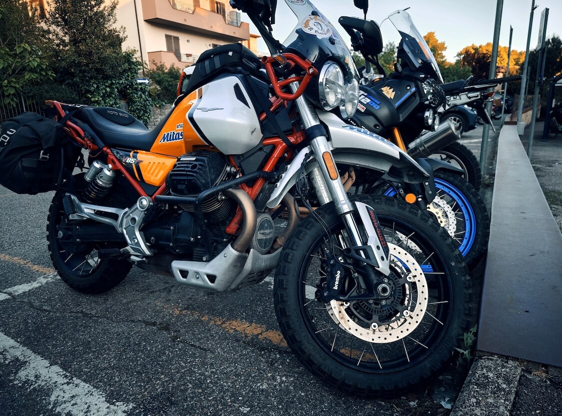 Oltre a me, c’erano alcuni partecipanti in sella a veicoli del gruppo Piaggio, tra moto e scooter, dichiarando all'arrivo una prova confortevole: alcune Moto Guzzi V85TT e una Vespa 125 t.s. (chiamata anche Rally dei giovani) guidata dall'amico Stefano di Sestri Levante.