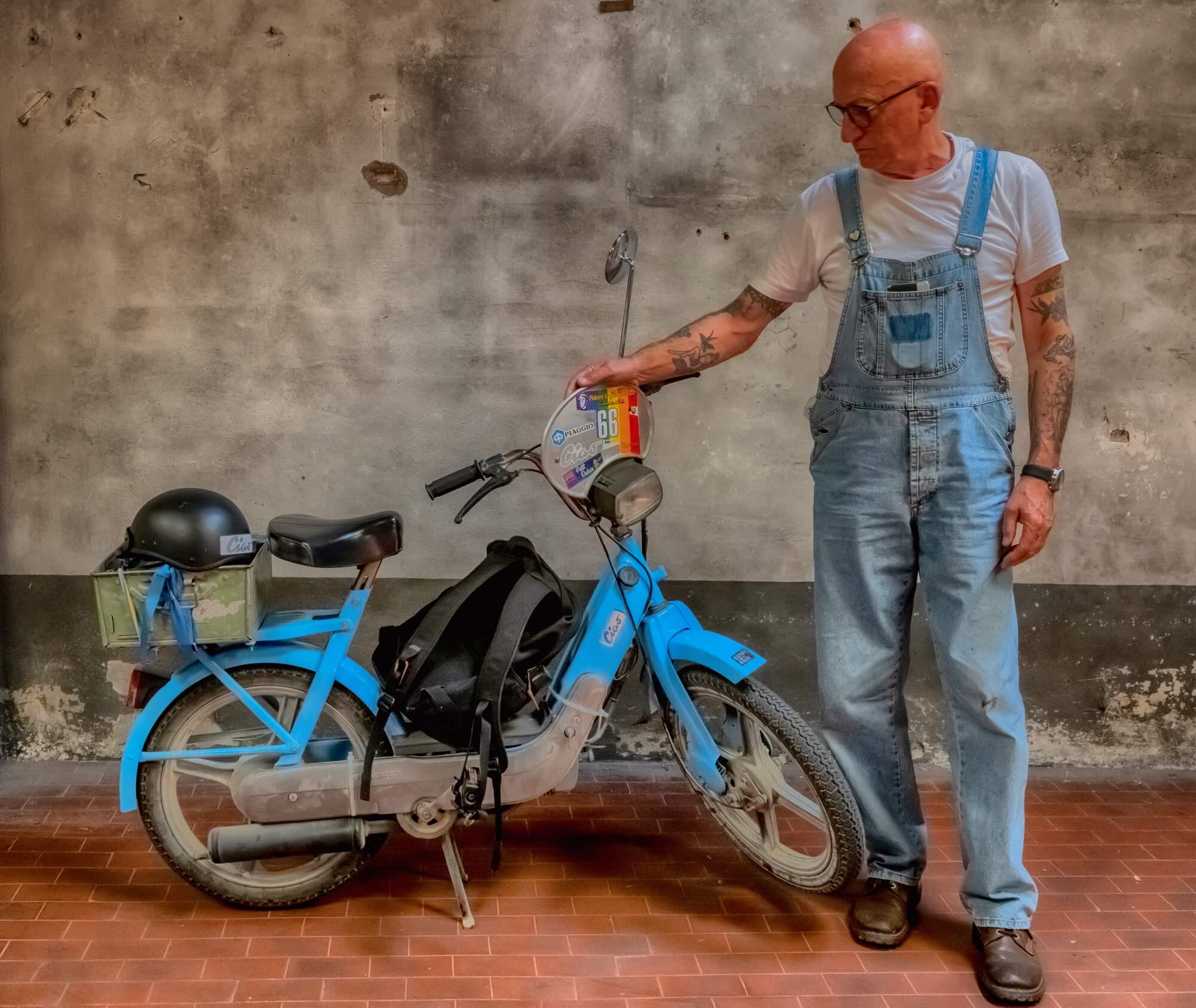 IO & IL CIAO. “‘CIAO’ la parola virgolettata rappresenta, oltre che il richiamo al piccolo e straordinario ciclomotore, un intercalare in lingua universale che tutto il mondo comprende. Sarebbe bello che Piaggio potesse valorizzare questo nome storico e iconico per la commercializzazione di un veicolo con la stessa estetica e, ovviamente, con propulsore tecnologicamente attuale… e perché no? Elettrico, magari con frenata ‘rigenerativa’. Io il mio Ciao lo uso quasi quotidianamente, e non c'è volta che qualcuno non mi fermi per curiosità oppure nel ricordo dei tempi che furono, e tanti, in un modo o nell'altro, hanno una propria storia da raccontare che ha come protagonista il ‘CIAO’. Un giorno vorrò iniziare a farne tesoro di queste storie e raccoglierle, perché alcune sono davvero significative e interessanti. Sono convinto della riuscita di questo progetto… magari da condividere con altri appassionati del mitico Ciao!”.