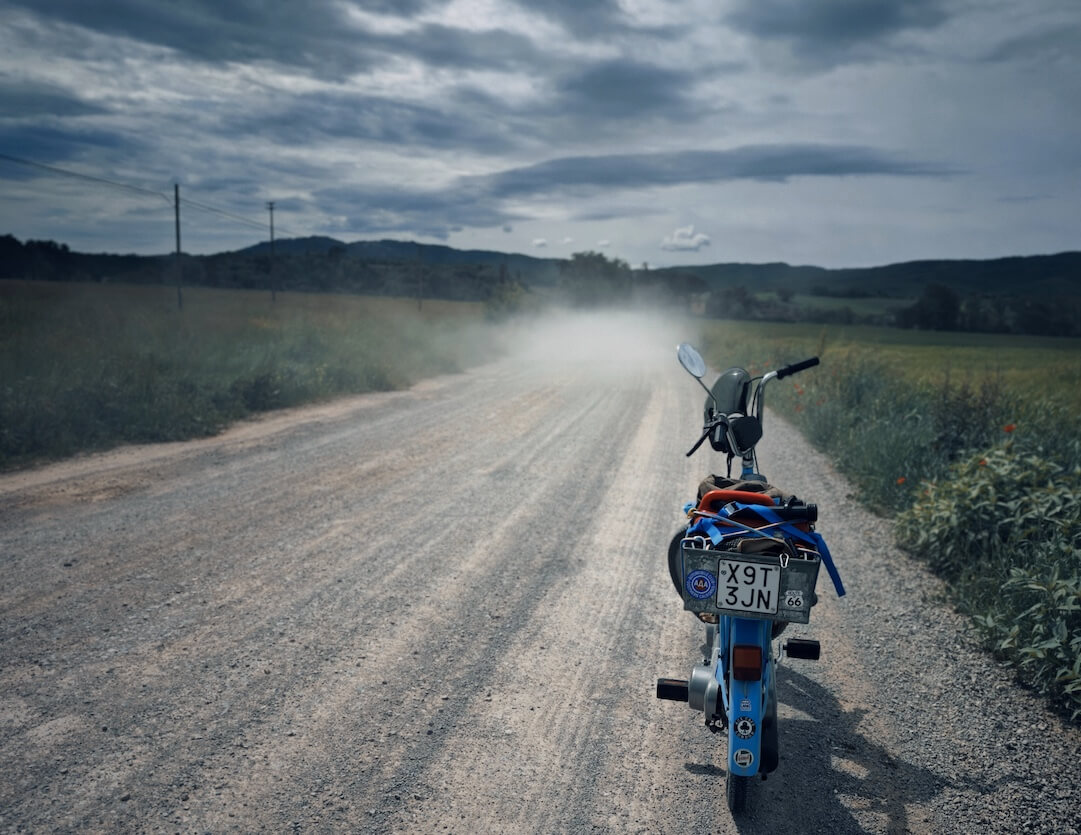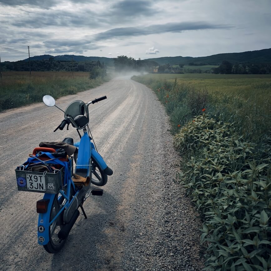 Da solo, tra polvere e sterrato, immerso nei paesaggi toscani. Photo courtesy dell’autore.