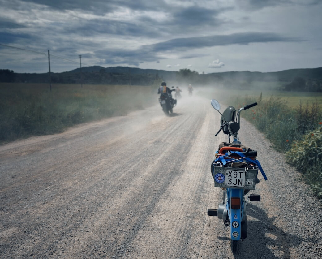 Nella polvere sulle strade bianche. Photo courtesy dell’autore.