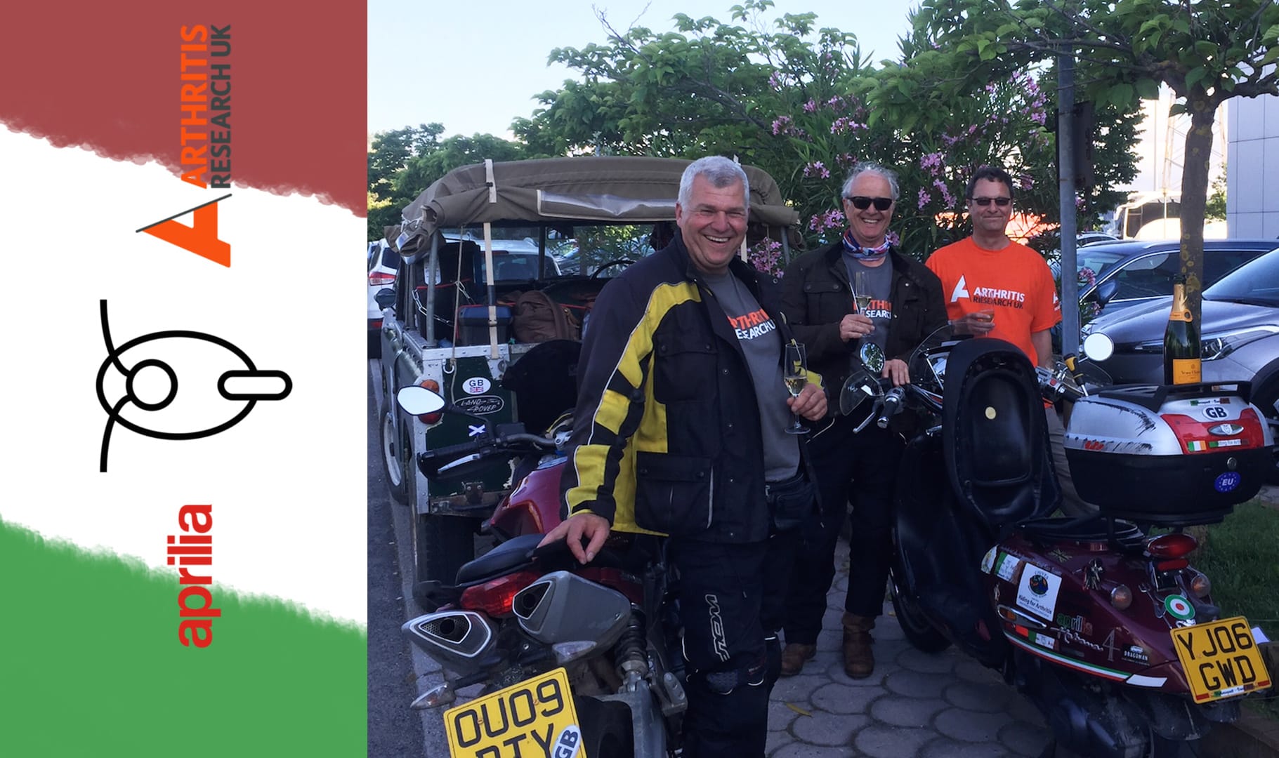 Giugno 2018 – Si chiama “Riding for Arthritis. Charity Ride Suffolk-Pisa” il tour compiuto da tre amici inglesi, con meta il Museo Piaggio di Pontedera, in Toscana, a due passi dalla sede del Gruppo Piaggio. L’intento era raccogliere fondi per la ricerca contro l’artrite. Un viaggio di oltre 3.000 chilometri, attraverso l’Europa, di cui hanno parlato numerosi giornali e radio. L’avventura dei tre coraggiosi “giovanotti” inglesi ha fruttato finora oltre 6.500 sterline, destinate anche ad aiutare le persone affette da questa disabilitante malattia.